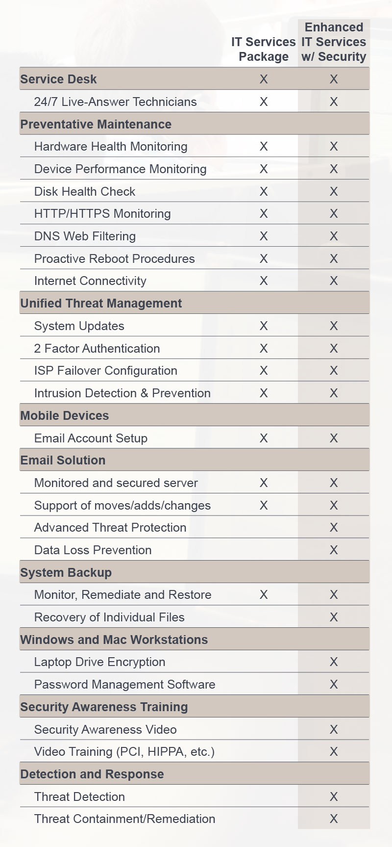 All this in mind, beyond our basic RMM service that provides basic virus and malware protection, we can help you get one, two or more steps past that with: